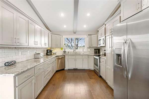 - Dishwasher, Dryer, Garbage Disposer, Gas Oven, Microwave, Range, Refrigerator, Washer