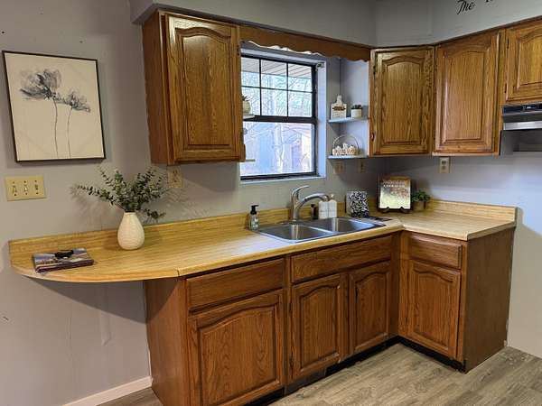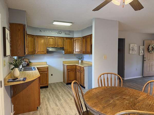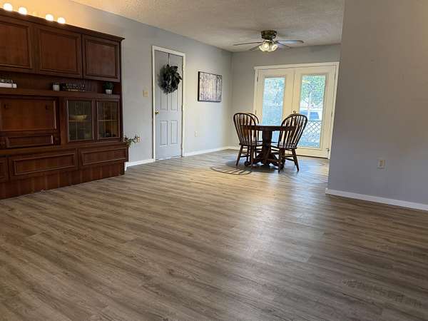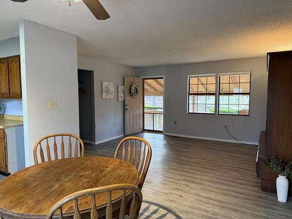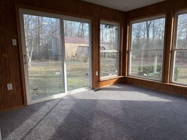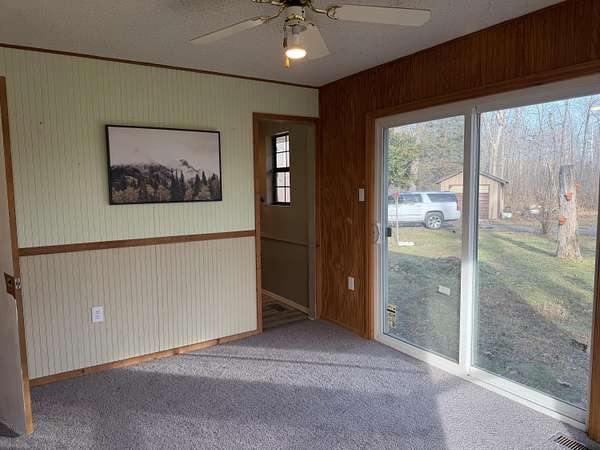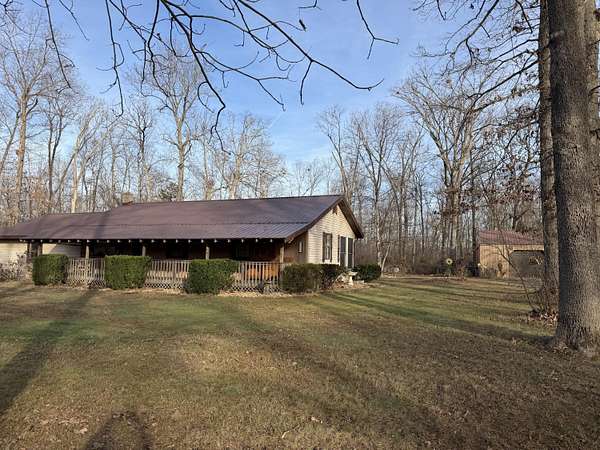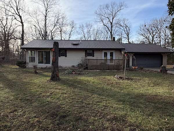 Set on 15 wooded acres, this rustic one-level retreat offers privacy, space, and country charm. The 3-bedroom, 2-bath home features a kitchen-dining combo, vinyl plank flooring throughout the home with new carpet in the bedrooms. A covered front porch offers a quiet spot to enjoy the wooded surroundings. Outside, you'll find a small outbuilding and a spacious insulated shop with concrete floors and electric which is ideal for projects, storage, or workspace needs. Located in the Rogersville School District, this property presents a great opportunity for those looking to personalize a peaceful rural setting.