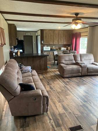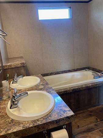 Est $653/mo2017 Clayton 16x76 is well cared for with vinyl siding and shingle roof. Master has large closet, double sink vanity, soaker tub and separate shower. The land is 5.8 acres with large trees, front and rear porches and an outbuilding.