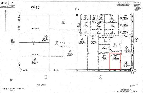 To locate the parcel, please use the down-the-street neighbor's address, 3217 E Avenue G, Lancaster, CA 92535; or use the following SW corner coordinates: 34.733756, -118.080467.