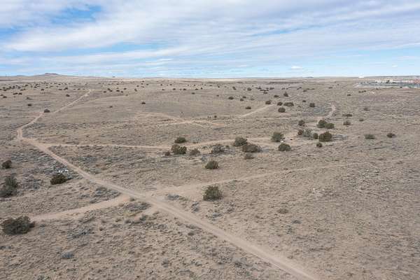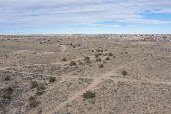 From the intersection of Unser and Rainbow Blvd NW Head towards Volcano Vista High school for .6 miles. Turn left onto dirt road Squaw Rd/could be Rosa Parks on some maps. property is on your right side. Lat / Long 35.171971, -106.734415