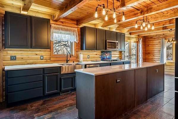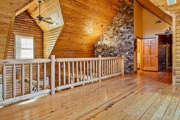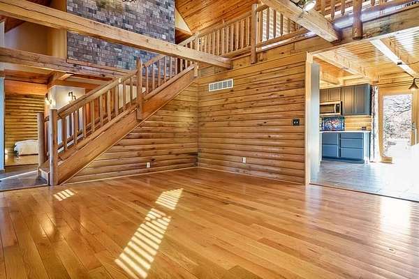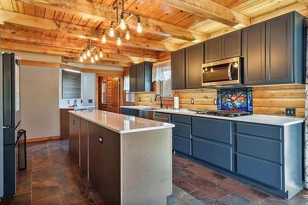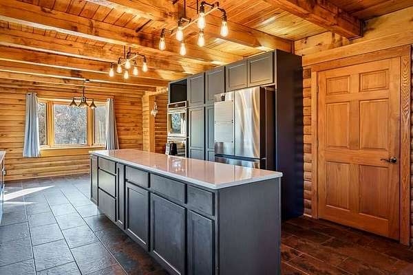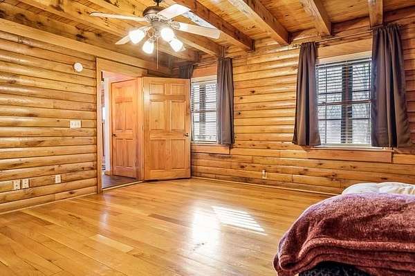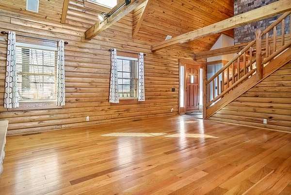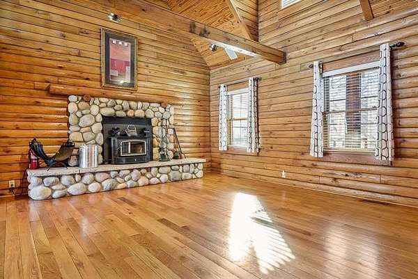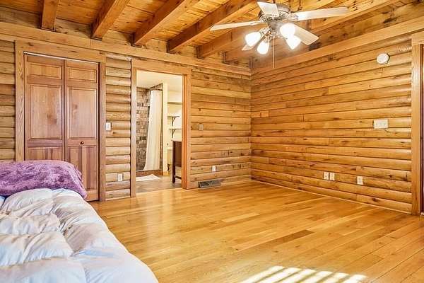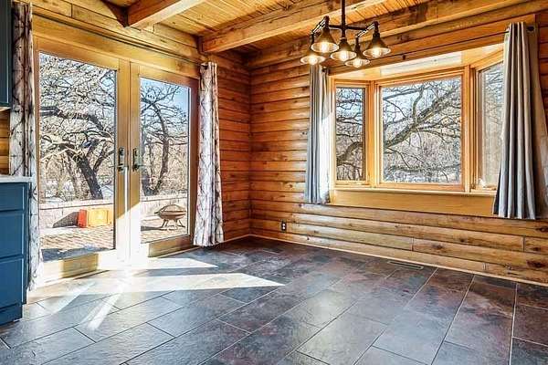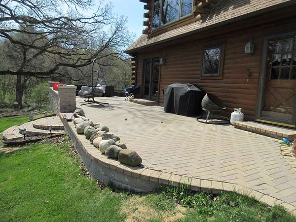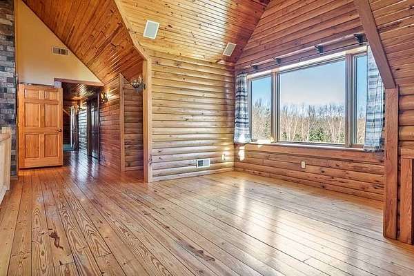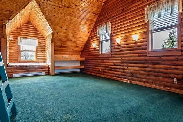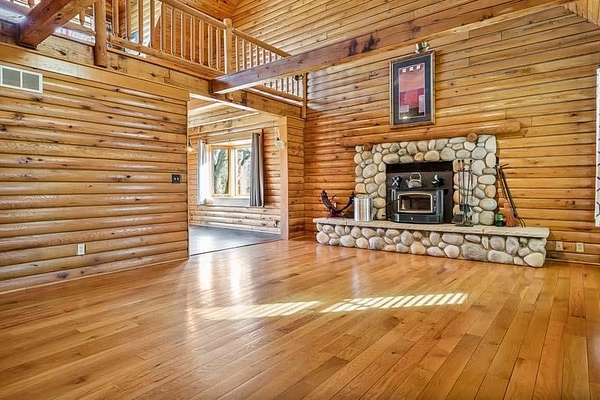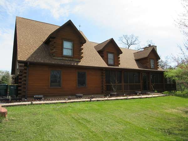This exceptional custom Gastineau full log/timber home boasts over 3,800 sq ft of living space, situated on 3.27 private, wooded acres.This full log timber home is designed and built to classic log home specifications, without the need for chinking. This approach offers several advantages, including minimal settling problems, superior insulation, and an abundance of interior timber walls. This stunning two-story residence has undergone extensive updates valued at over $100,000. The home is strategically located just minutes from I-90 and Route 173, offering a serene retreat without sacrificing accessibility. 2023 updates include the remodeling of all three bathrooms, featuring tile floors, showers, tubs, vanities, and fixtures. In 2024, a kitchen update was completed, including tile floors, cabinets, countertops, a farmhouse sink, island, pantry and state-of-the-art stainless steel appliances featuring a built-in wall oven and new tile in the dining area. The most recent update, in 2025, includes a exterior wraparound stone walls and brick paver patios and sidewalks. Additional features include a vaulted timber-beamed ceilings and a river rock fireplace. The property boasts a large three-season front porch. Hardwood floors are prevalent throughout the home. The main level includes a bedroom with an adjoining bathroom featuring a custom walk-in shower and clawfoot bathtub. The spacious living room boasts vaulted two-story timber ceilings and a fireplace with an insert. The updated chef's kitchen features granite counters and tile floors. A mud room with laundry facilities is also on the first floor. The upper level has two additional bedrooms plus a full bath. One bedroom is a spacious 34' x 24' dorm-style bedroom with window seats, built-ins, and a loft. An additional family room loft-style area overlooks the living room. The bedroom hallway features a huge built-in attic storage and closet areas. Basement includes a finished Rec Room and another Family Room with built-ins. Additional Highlights in 2022, owner-owned solar elevated ground-level panels with backup battery banks were installed at a cost of $30,000+ by a local Roscoe Company and with the fireplace insert and dual HVAC systems, they all contribute to the home's energy efficiency. Electric monthly bill was as low of $19.00 to high of $135.00 over the year. Wow a attached oversized insulated three-car garage that has three automatic garage door openers is also a notable feature. The home's hilltop setting provides exceptional privacy and wooded country views. For potential buyers peace of mind, recent inspections were performed well, septic, and radon, all successfully passed, and a home inspection has been completed with recommended minor repairs underway. The listed price is at the Professional Appraised Value. All reports are available for qualified buyers to review. Due to the current owner's disabled veteran status, property taxes are estimated as they are exempt from paying Winnebago county property taxes. This rare opportunity offers ownership of a custom designed log/timber home situated on 3.27 acres conveniently located close to town amenities. Additional pictures can be requested.