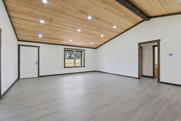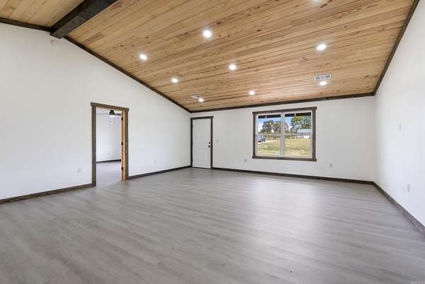 Come check out 642 School Road! This brand-new rustic home sits on 8.08+- acres and offers the perfect blend of space and privacy with modern comfort. The open-concept kitchen features a large island, plenty of storage, and a spacious pantry. You'll love the tongue-and-groove vaulted ceiling that adds warmth and character to the main living area. With three bedrooms and two bathrooms, the split floor plan provides both function and flexibility. Enjoy peaceful mornings and quiet evenings on the large covered back patio overlooking your beautiful country setting. The home features a durable metal roof, excellent insulation, and high-efficiency heat and air for year-round comfort and lower utility costs. Sitting on a corner lot just five minutes from Rose Bud Schools and only fifteen minutes to Searcy or Heber Springs, this property offers the convenience of nearby amenities while being outside the city limits with no restrictions. Experience quiet country living at its best! Call us today to schedule your showing!
