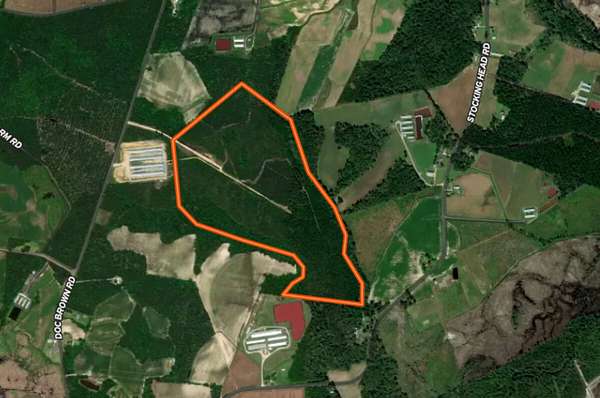This unrestricted property is ready for you. This property has a heavy mix of Planted (12-15 year old regrowth) of Pines and a light mix of Hardwoods in a small section of the property. None of the property is located in a 100-year FEMA Floodplain. There is a small creek that runs along the boundary of the property. There is a deeded Easement off of Doc Brown Road that allows access to the subject property. According to LandID Soil Maps the property has around 51% Autryville Loamy Fine Sand (AuB), 21% Noboco Loamy Fine Sand (NbD), 12% Lumbee Sandy Loam (LuA) and 10% Rains Fine Sandy Loam (Ra). There has NOT been a soil evaluation conducted on this property to determine soil suitability for a septic system. This property sits at approximately 80' of elevation with a slight downward descent to 60' towards the rear of the property.