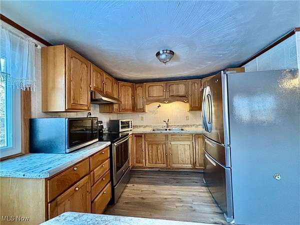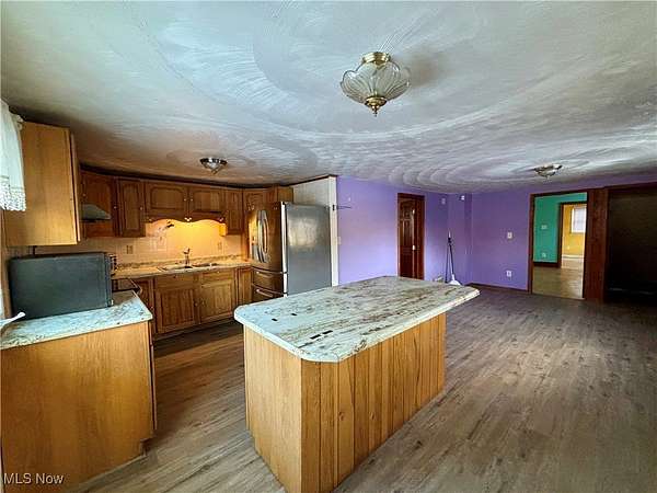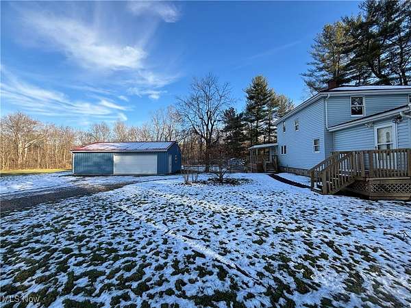 Unique opportunity with this property offering three parcels totaling approximately 3.87 acres in the Franklin Local School District. Versatile 24x36 detached metal garage with electric provides excellent space for storage, hobbies, or future use. Expansive acreage offers flexibility for outdoor enjoyment, additional structures, or potential future plans (buyer to verify). Home features a metal roof, some newer windows, newer plumbing 2025 and a walk-out basement. Main level includes a laundry room, first-floor bedroom, and full bathroom, allowing for convenient one-level living if desired. Eat-in kitchen with generous space. Upper level includes three additional bedrooms. Gas furnace with supplemental heat pump, central air, and gas hot water tank. Rare multi-parcel setting combining land, outbuildings, and functional living space. -