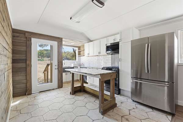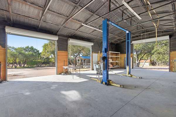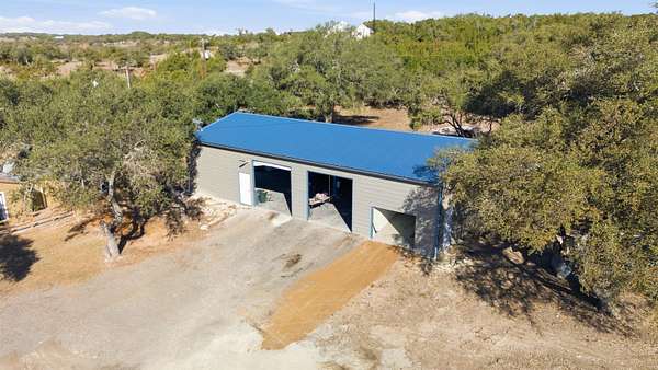 Hill Country beauty on 9 unrestricted beautiful acres with complete privacy nestled in the heart of Round Mountain, Texas. It features a cabin that can serve as a guest house after you build your dream home. Seemingly endless Hill Country views and cleared land to showcase the awesome oak trees. This delightful one-bedroom, 1.5-bath home, with its rustic character, offers a peaceful escape surrounded by the natural scenic landscape. The property features a spacious wood deck with a hot tub for relaxing after a hard day. The property includes an insulated shop (30x60) with four roll-up doors and a professional-grade car lift. The open terrain and panoramic views are endless.