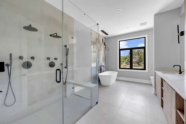 Luxury Modern Retreat on 6+ Acres in Round Mountain, TX Experience modern European elegance in this brand-new estate set on over 6 acres of Texas Hill Country. Designed for both style and comfort, the home features all en-suite baths, clean lines, and open-concept living with seamless indoor-outdoor flow. A dedicated office with additional bonus/flex room offers endless possibilities, whether for a home library, gym, or media space. Conveniently located near Marble Falls, Horseshoe Bay, and Fredericksburg, this property offers seclusion without sacrificing accessibility. Don't miss this rare blend of modern luxury and Hill Country charm-schedule your private tour today!
