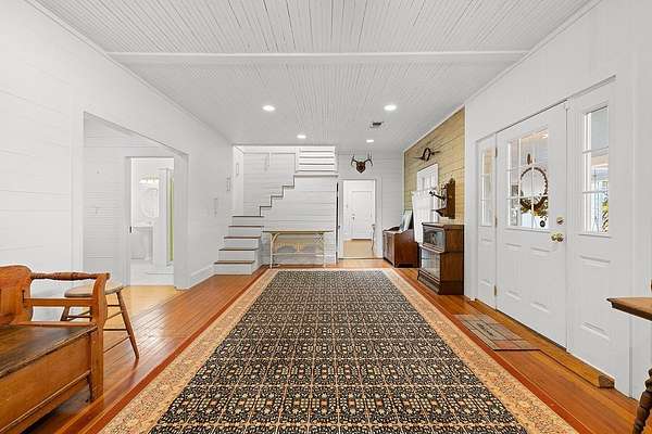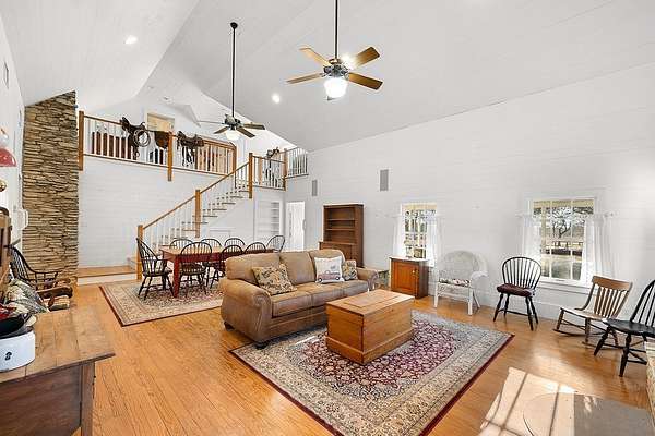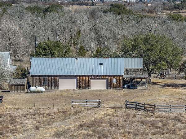 Just minutes from Round Top and Fayetteville, this 107-acre ranch blends history and thoughtful updates. The farmhouse, built circa 1905 and remodeled/expanded in 2003, features high ceilings and exposed native stone. The addition was designed around the original stone fireplace, showcasing it beautifully inside. The kitchen offers a large island in its own space while remaining open to the living room with a second fireplace. Improvements include a large garage with living quarters, a metal barn, and multiple barns and outbuildings. Rolling hills, woods, open pasture, wet-weather creek, bridge, and three ponds provide space for cattle, hunting, recreation, or future homesites. An additional 27 contiguous acres is available.