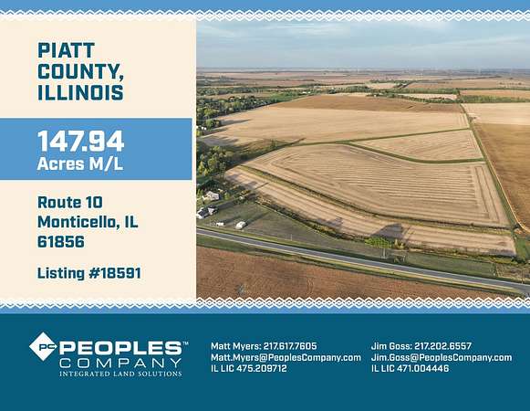 Peoples Company is pleased to present the opportunity to acquire 147.94 acres m/l of high-quality Central Illinois farmland. The farm consists of 136.79 tillable acres m/l with favorable soil types, including Elburn and Plano. The soil types create an aggregate soil Productivity Index of 130.3 on the tillable acres. The buyer will be responsible for reimbursing the tenant for fall fertilizer applied, totaling $10,296.46. The farm is open for the 2026 crop year.