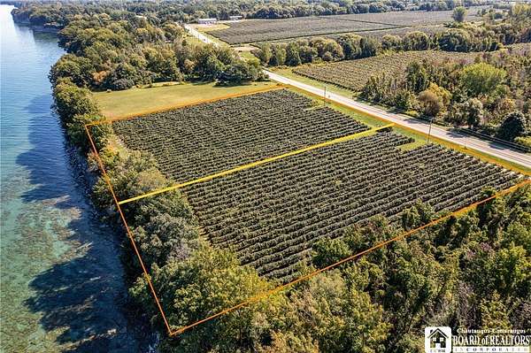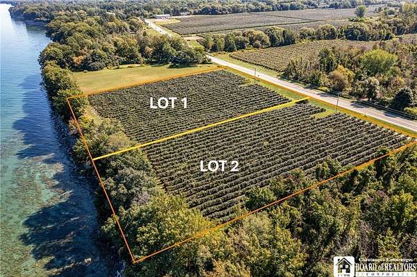 Lot #1. 2-acre lot with approximately 200 feet of frontage on Lake Erie. Currently planted as a vineyard along the Lake Erie Wine Trail, the property offers wide water views and stunning sunsets. An adjacent 2-acre lot is also available, giving you the option to own up to 4 acres total. Conveniently located just 30-40 minutes from Erie, PA, about 1 hour 20 minutes from Buffalo, NY, and only 7-10 minutes to Barcelona Beach.