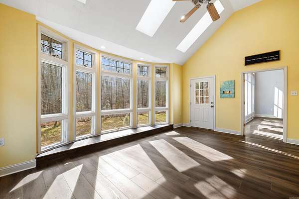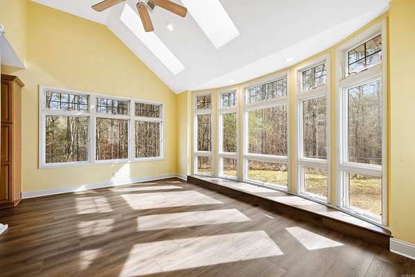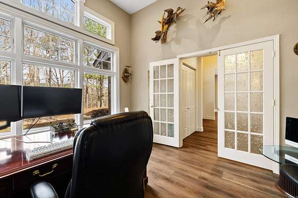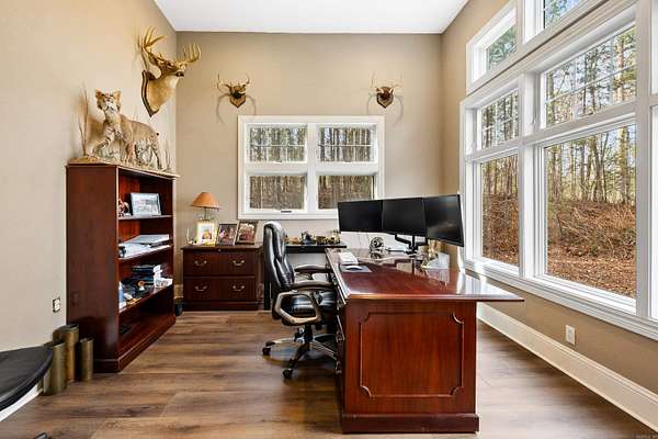 Custom built mountain oasis on more than 7 acres of land near BOTH Lake Ouachita and Lake Hamilton. National forest borders two sides of the property. Three bay garage and shed gives plenty of room for vehicles and storage. Flat lot below gives opportunity for any added shops, animals, or outdoor needs. Generac generator fully functional and a water filtration system attached to the well. Inside offers thoughtful design from every angle. New LVP and Carpet throughout. The office provides a comfortable workspace. Off the main dinning room area a butlers pantry great for all gatherings. Chefs kitchen with quality appliances and opens to a welcoming dining room with a serving bar that is ideal for gatherings. Primary bedroom includes an updated ensuite bath with his and hers closets, walk in shower and separate sinks for comfort and convenience. A spacious living room with 18ft ceilings offers all the natural light from outside overlooking the backyard. Upstairs hosts a loft style study overlooking the living area with built in shelving for your at home library, three additional bedrooms with a full bath and half bath. End your day on the new deck watching the stars.