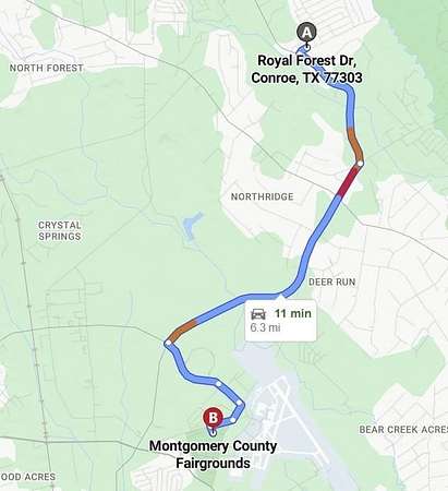 From I-45: Take E Powell (County Line Rd) to Rose Rd (RIGHT on Rose Rd) LEFT on Royal Magnolia Dr ENTRANCE (ROYAL FOREST marque & USA Flag) LEFT on Royal Creek Rd Property is on your right (just south of Royal Campbell Dr). There is a vertical wood stake stamped with 471A and HARGIS family name