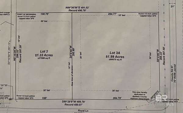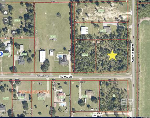 Est $1,387/moPrime 1.99 arce lot in Elberta, Al! No HOA! Top rated school systems. On the corner of CR 97 and Royal Lane. Utilities are avalaible. Close to beaches and easy boat bay access. Country living with all the amazing amenities the gulf coast has to offer. No wetlands. Plenty of space for a home, barn and a boat! Completely buildable lot. The adjacent lot is also for sale and is 1.99 acres. Convenient to Foley, Gulf Shores, Orange Beach, Pensacola and of course the cute and quaint towns of Elberta, Al. and Lillian, Al. Buyer to verify all information during due diligence.