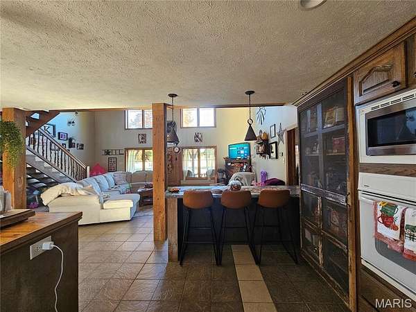 - Beamed Ceilings, Breakfast Bar, Cathedral Ceiling(s), Ceiling Fan(s), Custom Cabinetry, Double Vanity, High Ceilings, Kitchen Island, Kitchen/Dining Room Combo, Master Downstairs, Natural Woodwork, Open Floorplan, Pantry, Separate Shower, Soaking Tub, Solid Surface Countertop(s), Special Millwork, Track Lighting, Vaulted Ceiling(s), Walk-In Closet(s), Workshop/Hobby Area