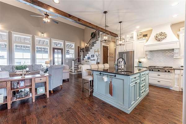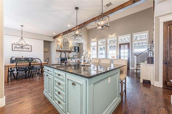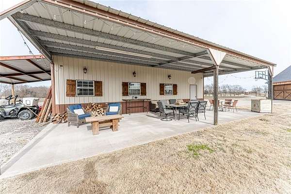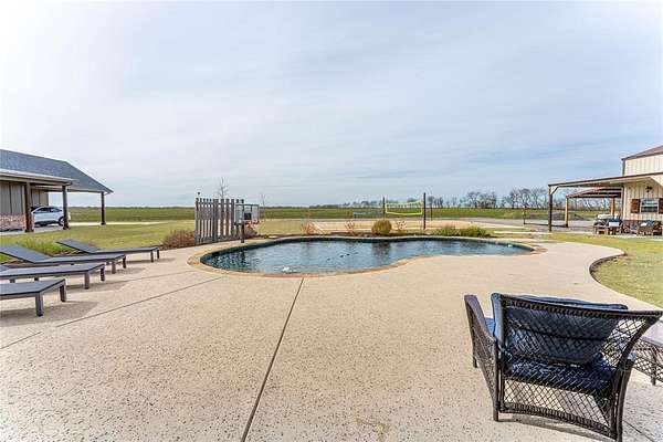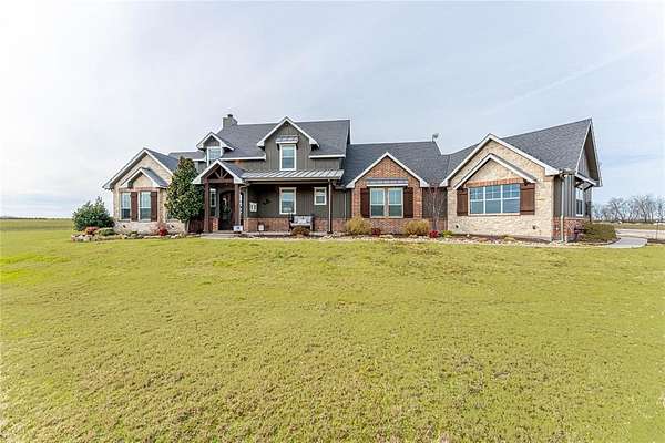Welcome home to this impressive multi-generation custom-built property featuring a 2,668 sf main home, a 1,255 sf guest home, and a 1,200 sf shop and barn, all situated on 54.476 acres of peaceful, private land. A gated entry welcomes you to the property. The home features gorgeous hand-scraped wood floors, open floor plan & abundant natural light throughout. The show stopping kitchen is a true showpiece with designer cabinets, farmhouse sink, large island with second sink, and beautiful granite counters. The separate dining room flows seamlessly into the open living area highlighted by a striking two-story stone fireplace. The spacious primary suite offers a walk-in closet and a spa-inspired bath with dual vanities, garden tub, linen storage, and separate shower. Three additional generously sized bedrooms--two located downstairs--plus an additional living area and media room upstairs provide flexible living space for family and guests. The guest house is equally impressive, complete with a full modern kitchen, living area, and private primary suite. Step outside to your own entertainer's paradise featuring an in-ground pool, expansive patio, sand volleyball court, outdoor wood-burning fireplace, built-in grill, and sink -- perfect for hosting or relaxing in your own private retreat. Love these homes, but looking for less land? See separate listing for custom homes, shop, barn and just 10-acres. MLS 20952745