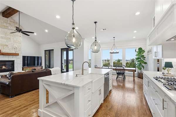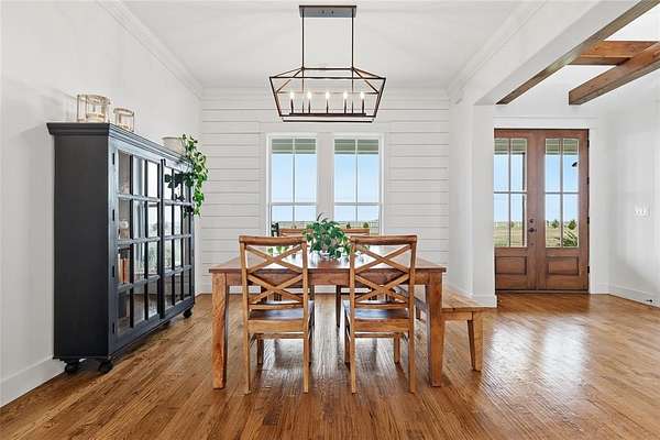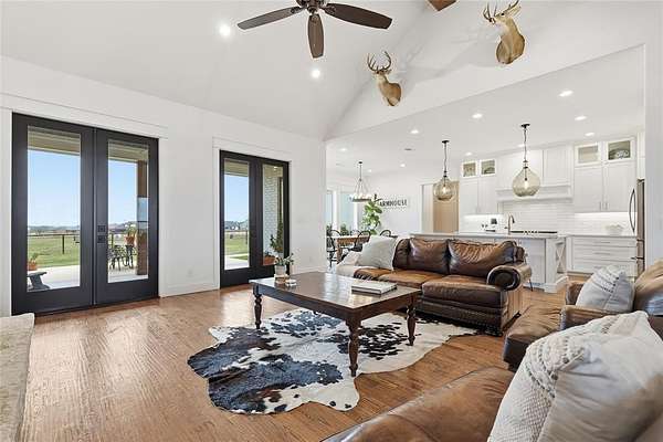 Welcome to your Modern Farmhouse retreat--an exceptional 5 acre equestrian ranch in Rockwall County designed for those who value space, craftsmanship, and the freedom of country living. Why build when this thoughtfully curated home is complete and ready to enjoy now? Life here is meant to be lived outdoors as much as in. Start your day rocking on the front porch, afternoons on the back patio, and enjoy peaceful views as horses graze across open pasture. A drive-through 4 stall barn serves equestrian amenities, complemented by a shaded loafing shed and an 80' x 100' cushioned-sand arena for daily riding and training. Inside, the home lives beautifully with a 100% custom-crafted interior that blends warmth and refinement. Artisan cabinetry, wood-beamed ceilings, and a floor-to-ceiling stone fireplace define the main living space, creating a welcoming atmosphere for relaxed gatherings or entertaining. The open floorplan flows effortlessly, while the split-bedroom layout offers privacy and a lifestyle-friendly design. The kitchen is a true showpiece with custom cabinetry, quartz countertops, a generous center island, glass-front display cabinets, and a perfectly appointed butler's pantry. Designer finishes and a chemically injected slab foundation supported by piers enhance quality, durability, and long-term peace of mind. Built with energy efficiency in mind, the home offers open-cell spray foam insulation that creates a continuous air seal throughout the walls and attic. This helps regulate indoor temperatures, minimize outside air infiltration, and allows HVAC system to operate more efficiently. The result is improved indoor air quality, quieter interiors, and lower utility bills. Discover High Point Ranch where residents enjoy a private park reserve, equestrian and walking trails, a covered pavilion, and a 180-acre reservoir for paddling and fishing. A charming split-rail entrance and automatic gated entry welcome you home. Begin your next chapter at 12657 S FM 548!