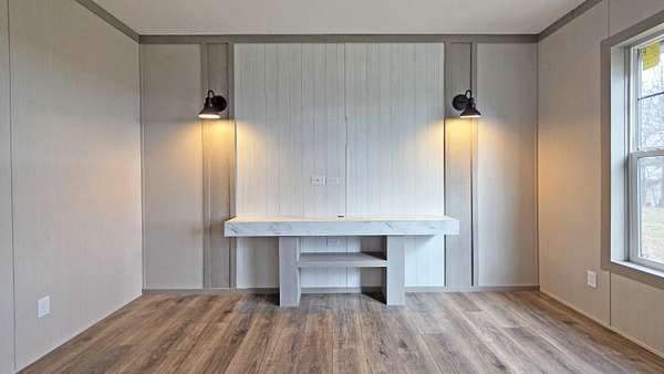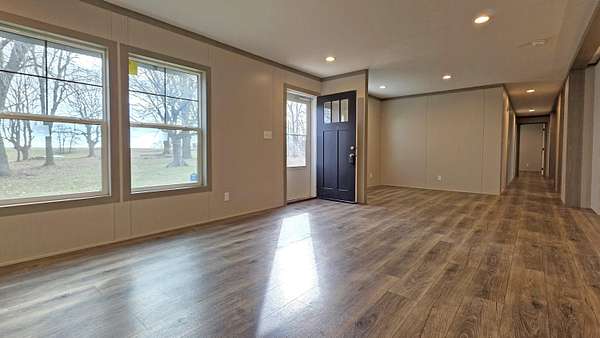 Welcome home to this beautifully built 2024 home set on approximately 2 peaceful acres, offering space, style, and modern comfort inside and out. Step inside to an open and inviting layout featuring 4 bedrooms and 2 full baths, with multiple living spaces designed for both everyday living and entertaining. The home offers a living room, family room, dining area, and an eat-in kitchen, giving everyone room to spread out. The kitchen is a standout with white cabinetry, sleek countertops, a large island, stainless steel appliances, and modern lighting, all flowing seamlessly into the dining and family areas. The guest bath features dual sinks, making mornings easier for family or visitors. The primary suite is a true retreat, complete with dual vanities, a soaking tub, and an oversized tiled walk-in shower for a spa-like experience. Throughout the home you will find luxury vinyl plank flooring, recessed lighting, neutral finishes, and thoughtful design details. Outside, the expansive yard provides endless possibilities for gardening, recreation, or simply enjoying the quiet surroundings. This move-in-ready home combines new construction quality with country space, all while offering modern finishes and a functional layout. A rare opportunity to enjoy new construction on acreage.