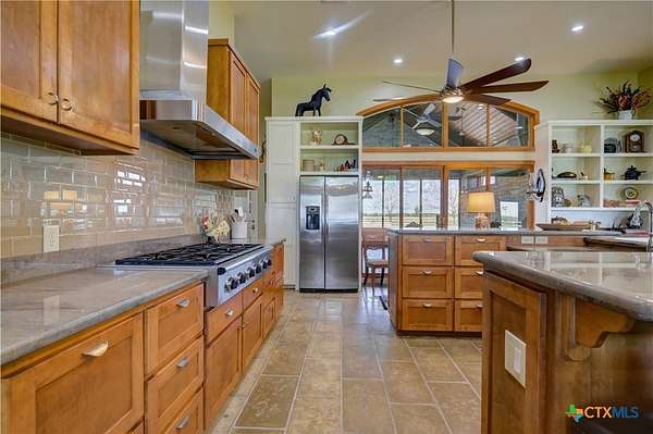 The Runge River Ranch is one of the best live water ranches in the South Texas Plains Region. This majestic river front property is filled with dinosaur size native hardwoods and thick underbrush full of natural vegetation for the abundance of wildlife present throughout the ranch. It is well balanced with both native & improved pastures. The Runge River Ranch is crossed fenced into four sections with water troughs available within all the fences. A true sense of place originates amongst the meandering seasonal creek system that transverses through the back side of the ranch towards the gorgeous river frontage. The ranch exhibits rolling terrain from front to back with over eighty feet of topography variation within the boundaries of the Runge River Ranch. The homestead on the ranch consists of a one-story rock home with plenty of room to live and/or entertain family and friends. The back porch of the main home presents a peaceful and panoramic view of the countryside. Enjoy the seasonal sunsets along side the exterior fireplace peering out towards the panoramic views of the river valley. Guest house, a pool & hot tub, one main barn and an equipment barn. ~ 1.5 hr. from San Antonio, TX ~ 2 hr. from Austin, TX ~ 2.5 hr. from Houston, TX A South Texas Plains Live Water Ranch w/ Home, Guest Home & Barns 5 Bedrooms, 3.5 Bathrooms, media room, butlers pantry, wine/gun cellar, huge food and prep space pantry, huge utility room, covered patio with fireplace, private outdoor shower off of master suite, 2.5 bay attached garage and more Balance of beautiful open grassy pastures & dense wildlife habitat with spring fed creeks and huge majestic native hardwood trees ~1700 Feet of County Road 103 blacktop road frontage ~8600 Feet of gorgeous San Antonio River frontage ~70 Feet of elevation change with mostly sandy loam soil ~4000 SQFT metal barn with roll up overhead doors Equipment barn for tractors and more Two operating water wells on site