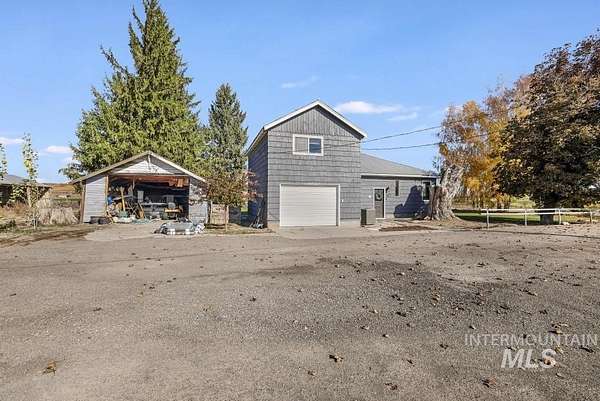 Shops, shops, and more shops. This great property with wonderful views of Mt. Harrison sits on 2.3 acres of fully ditched and irrigated land. 3 bedrooms, 2 bathrooms. Huge master bath and closet. Cozy wood stove in living room. Large kitchen, newer appliances. HVAC outside heat pump compressor is only a couple of years old. Back to the shops, 1 is approx 2800 sq ft, 13 tall x 18 wide door opening, partial concrete floor (w/electricity). An insulated detached garage (w/electricity), an insulated 240 sq ft shop (w/electricity), couple of pole barns, another 760 sq ft garage/shop. Now for the finale, a 4 stall horse barn. Property has some fencing and a corral area. Plus multiple large fruit trees. A must see for those wishing to be in the country.