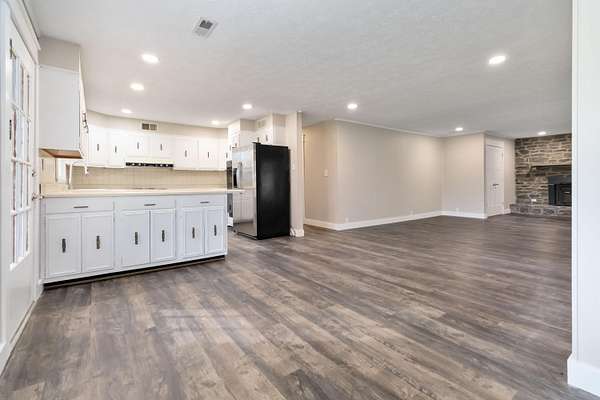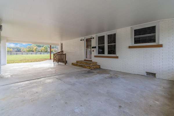 Beautifully updated ranch home on 3 acres in an excellent location within the city limits of Russell Springs! This one-level home features 3 bedrooms and 2 full bathrooms with an unfinished walkout basement offering great future potential. The home includes a covered carport attached to the house, plus a large barn and a spacious detached block garage-perfect for storage, hobbies, or equipment. Inside, you'll find a wood-burning fireplace in the living room and a versatile great room that would make an ideal office or additional living space. The third bedroom also offers flexibility and could serve as a home office thanks to its private exterior entry/exit. Recent renovations and updates include new LVP wood-plank flooring, new trim, doors, and hardware, recessed LED lighting throughout, freshly painted basement with sealed floors, and updated bathroom with a new tub and vanity. The exterior has been freshly painted on the home, barn, garage, and blackboard fence. Also added hemlock front porch posts, new hemlock wood shutters, updated exterior lighting, and newly sealed blacktop/paved driveway. The property is connected to city water and sewer and offers two washer/dryer hookup options-one on the main level and one in the basement. The fenced field makes this property a great option for animals while still enjoying the convenience of city living. A rare combination of updates, acreage, and location-don't miss this one!