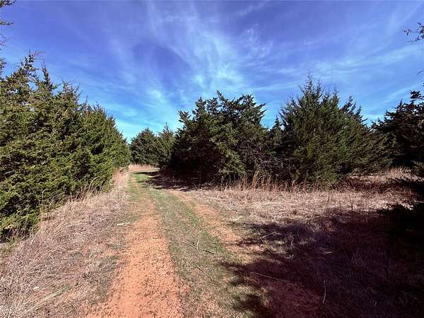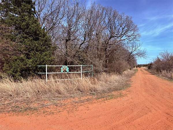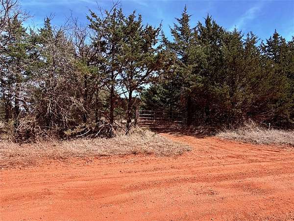 From SH 18, go east on E 810 Rd 3 miles. North on S 3470 Rd/Fine Cedars Rd 2.1 miles to property on east. Red gate at north end of property.