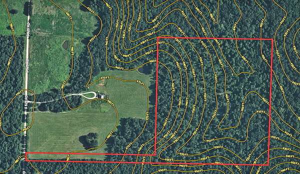 County Road 525 and a nice block of timber lying off to the east. This seclusion gives you a great opportunity to get deep into the deer habitat and hunt the good wildlife populations in this area. The neighbors to the south have row crops, so the deer are well-fed. There is a small, spring-fed pond on the property where several wood ducks flew off during the listing tour. The east-facing slope is a great location for a walk-out basement or an earth-contact structure. Located just 15 minutes to