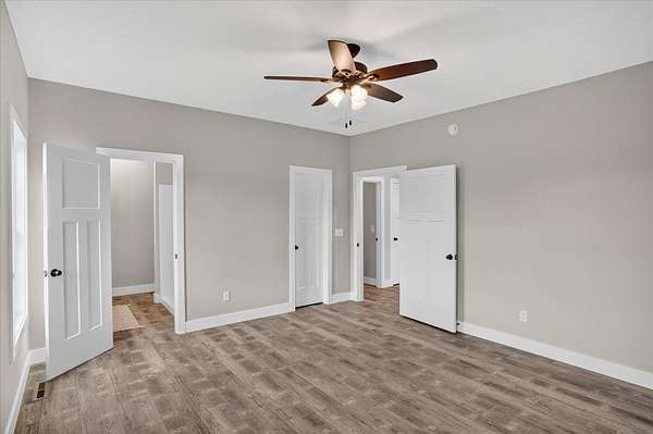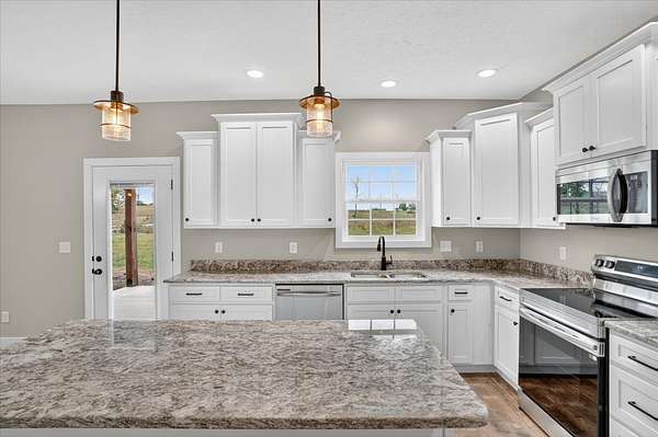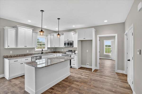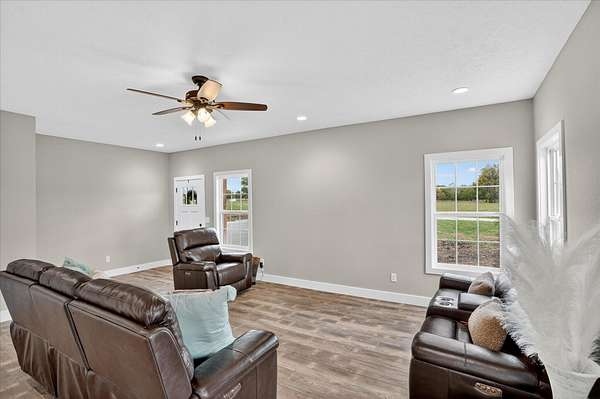 Experience peaceful country living on 5 beautiful acres with this stunning new construction home featuring 3 bedrooms and 2.5 baths. The open-concept design showcases modern finishes, abundant natural light, and a spacious kitchen with custom cabinetry, quality appliances, and a large island perfect for entertaining. The primary suite offers a private bath and walk-in closet, while two additional bedrooms provide comfort for family or guests. Outside, you'll love the massive 1,900 sq. ft. garage, complete with a tall RV bay ideal for your camper, boat, or extra vehicles. This property is powered by reliable Southwest Electric service, offering peace of mind and efficiency. Enjoy quiet country views from the covered porch, with additional acreage available if you'd like even more room to spread out.
