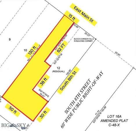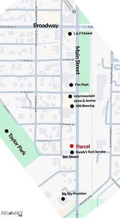 Rare commercial land in Manhattan's vibrant community with 15 ft of E. Main Street frontage. 3424 sq ft commercial parcel off Main St. and S. 8th St. Recently surveyed and all corners are marked. Zoned Central Business District which has no minimum set backs from property lines. Endless opportunities with ideal live/work. Use your imagination with this affordable lot---you could build an apartment on top of your business or shop. The strip of E. Main frontage jogs back to 30 feet off S. 8th with over 50 feet access from back alley. Manhattan has experienced tremendous growth which means all sorts of new business opportunities for you to pursue.