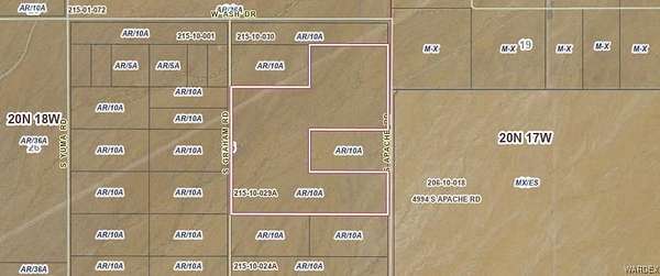 Est $2,538/mo121 acres adjacent to the industrial corridor off Apache Rd South of Oatman HWY and West of I-40. Zoned AG/RES with Gas pipeline running thru NW corner. A few acres of flood zone A in SE corner. Power across the street