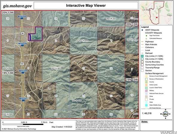 Two contiguous parcels of agricultural land just East of Kingman for a total of 154 Acres! Located within a close proximity of Hwy 93 for quick and easy access to town. Property has the entire perimeter enclosed with barbed wire fencing including two gates. Electricity and a registered water well with holding tank are located relatively in the middle of these parcels. It borders the Big Sandy River. This is a great location to build your private get away or ranch. You will need agent to view property as premises is behind locked gate.