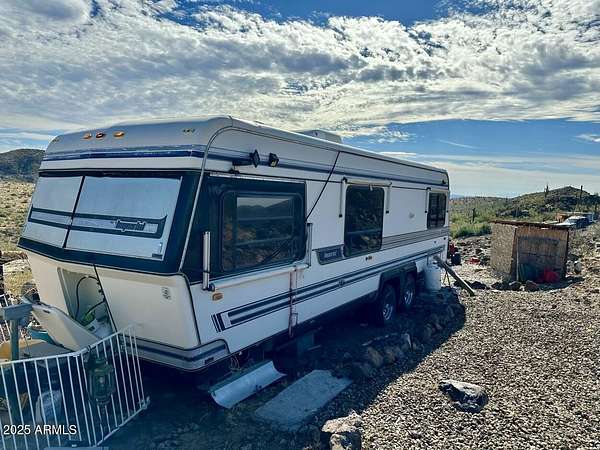Discover your 5-acre desert retreat just a few miles north of Lake Pleasant and minutes from the world-renowned Castle Hot Springs resort! This rare lot offers panoramic lake and mountain views, and is ideally suited for your dream home, complete with COMPLETED ROADS, BUILDING PADS, AND A FULLY FUNCTIONAL WATER WELL. Yavapai County offers free house plans to simplify your building project. Existing grandfathered structures (RV, barn, and more) add value and flexibility. The Lake Pleasant area is a rapidly growing hub with significant corporate investment nearby. Escape the city and embrace tranquility while staying connected to one of Arizona's most desirable regions.