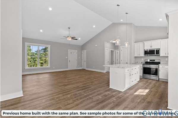 OPEN-CONCEPT 3-BEDROOM, 2-BATH HOME ON 3 PRIVATE ACRES IN BUCKINGHAM COUNTY! This Laurel Creek plan offers modern comfort in a serene, spacious setting. The great room with cathedral ceiling flows seamlessly into the kitchen and dining areas, perfect for entertaining or everyday living. The kitchen features granite countertops, Merillat cabinets, a central island, and pantry, while LVP flooring runs throughout the main living spaces for durability and easy care. Cozy bedrooms with plush carpeting provide restful retreats, and stylish bathrooms feature modern fixtures. Outside, enjoy over 5 acres of privacy and space for outdoor activities or simply relaxing in nature. This home combines peaceful rural living with convenient access to schools, amenities, and recreation. Don't miss your chance to own this exceptional Buckingham County property! Slated for completion August 2026.