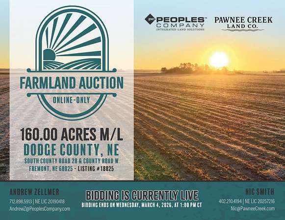 Dodge County, Nebraska Online Only Farmland Auction! - BIDDING IS CURRENTLY LIVE and set to conclude on Wednesday, March 4th, 2026, at 1:00 PM CST!
