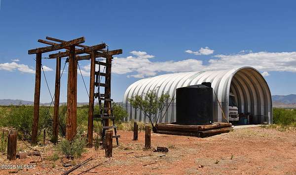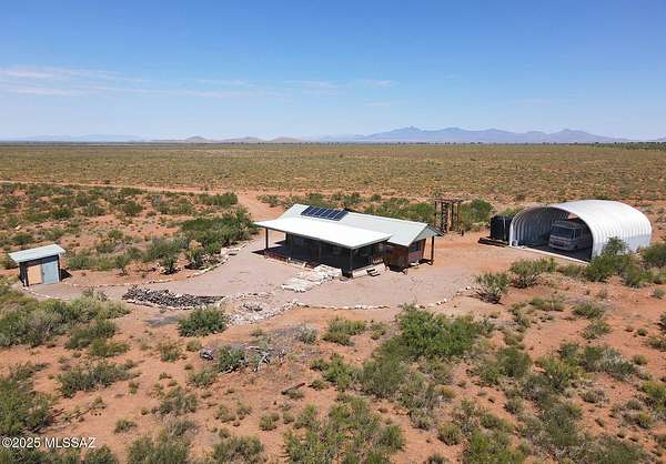 This 60-acre off-grid paradise features valuable improvements, private well and clear intimate views of the Chiricahua Mountains. Vntage mobile home w/ roof structure boasts a big back porch w/ yard & fire pit to enjoy the open skies. Quonset hut included. Solar power & compost toilet (currently no septic). For more development possibilities, power is just a few hundred feet away and Cochise RU-4 zoning allows for all kinds of options: manufactured, mobile homes or frame built dwellings OK. Borders Oak Ranch with thousands of open acres to the north and east. Exceptional seclusion with tons of potential to make your own. Come enjoy the gorgeous skies and tranquility of Southeastern Arizona country living. **Sale includes two parcels, Cochise APNs 401-77-004 & 401-77-003 Adjoining parcel APN 401-77-005 to the south is 40 acres with power at the lot and is also available for sale by separate seller, for a total of 100 contiguous acres. Please contact listing agent for either or both offerings.