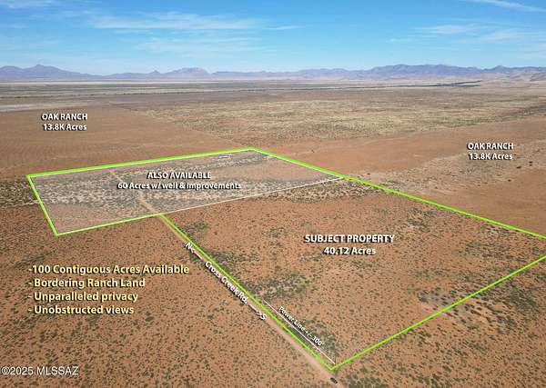 Take Hwy 191 to Highway 181 East. Proceed 10 miles to Single Tree Ln and turn left (north). Continue 0.5 miles to Uncle Curtis Ln and go right (east) 0.2 miles to Cross Creek Rd. Turn left (north) and proceed 2+ miles, almost to the very end. GPS coordinates: 31.914319904, -109.52941411