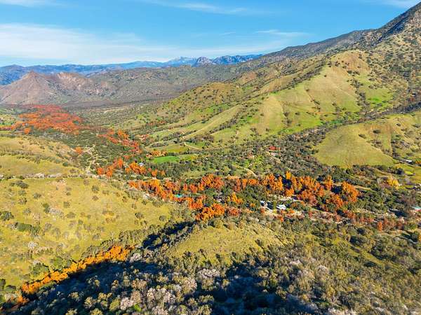 Rare opportunity to own 19 acres of scenic land in Three Rivers, offering both privacy and accessibility. The property is located approximately 6 miles from the town of Three Rivers, 6 miles from Kaweah Lake, and just 35 minutes from Visalia, providing a convenient balance between a peaceful foothill setting and nearby services. This gated property with a private drive features elevated terrain with expansive panoramic views, creating an ideal setting for a custom home, mountain retreat, vacation residence, or short-term rental. The surrounding natural landscape offers a quiet, private environment while still allowing easy access to town amenities and recreation. The property is served by a shared well, and the buyer will need to bring in power or utilize solar. Located in the South Fork area of Three Rivers, this foothill property offers privacy, views, and long-term potential in a highly desirable location.