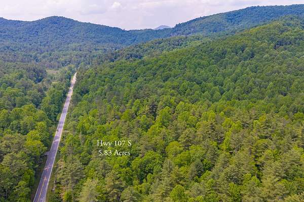 Beautifully wooded 5.83+/- gently rolling acres that adjoin the US Forest Service along HWY 107 S near the South Carolina border. This property has multiple uses for both residential and commercial applications. There will be light restrictions placed on the property before closing to prevent industrial activity or noxious noises. Part of this property was once the old wagon road into Cashiers Valley, when visitors traveled by horse and carriage to Cashiers, escaping the summer heat in South Carolina. The property features gorgeous, mature hardwoods and a diverse array of flora and fauna native to the area, including Wild Trillium and Lady Slipper. The East Fork of the Chattooga River runs along the road frontage of HWY 107; therefore, there are setback requirements from the creek. The end user will need to apply for a well permit and a septic permit during the due diligence process. If you love being in the woods and exploring the nature of this untouched area of the mountains, this is for you!