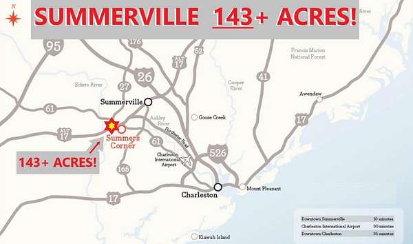WANT LAND!! OVER 140 ACRES!! SUMMERVILLE AREA!! (Just over 5 miles from ''Summers Corner'' Area, (A planned 8,000-home community with soon to come PUBLIX Shopping Center!! --- Currently zoned (SR) Suburban Residential. Ideal for residential development!! * Other possible uses: Industrial, Personal Estate, Recreation and Hunting (currently leased to hunt club, w/ approx. $2,000 income per year) -- Property is located ONLY 1.8 Miles from the Edisto River and only 10 minutes from Summerville! -- (Approx. 120 Acres on the North side of Hwy 17A and remainder on the South side of Hwy. 17A) - WATER & SEWER (Currently would need to be Well & Septic, HOWEVER city water & Sewer is coming this way soon, we are told within the next 1-2 years! Which makes this an AMAZING investment!**PLEASE NOTE! - ALL the information we have been able to obtain from the sellers, and any/all third-party organizations, including but not limited to city/county and other entities, has been posted to this MLS (under "Documents"). If you do not see the item in question (Plat, Survey, Wetlands JD's, Elevation Cert, Etc., it is because we do NOT have them. -- Unless specifically noted, these items in question, will be the buyer's responsibility, either during the DD period or post-closing. Thank you.