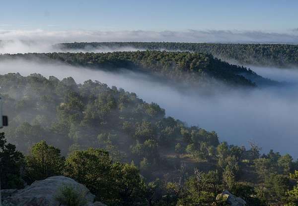 Outstanding 3.38 acre, one-of-a-kind parcel adjacent to National Forest, BLM land and 80,000 acre ranch. Access via a very primitive forest road. Absolute privacy, no neighbors for miles, no lights, no facilities anywhere close, yet only 45 minutes drive to Santa Fe. Access via a very primitive forest road. Plentiful juniper, pinon and ponderosa woodlands with open meadows for camp or build sites and dramatic canyon topography for privacy. Wild turkey, elk, deer and rabbits wander the area if hunting is your interest. Pristine with no road noise and pitch dark skies. Off-grid, no utilities, but the spectacular canyon setting, intensely quiet, private setting make this a unique & rare find. Owner financing possible. One of 3 parcels available. No address, seller will show by appointment.