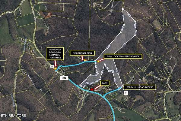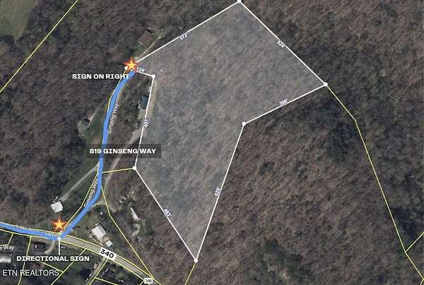 For the 35 acres parcel- Navigate to 1069 SHighwayTN-340, Parrottsville, TN 37843. Navigation will get you close then look for signs For the 10 acres parcel- Navigate to 819 Ginseng Way Parrottsville TN 37843. Navigation will get you close then look for signs. Directions From Newport TN- Head north on McMahan Ave toward Main St 387 ft. Continue onto US-321 N/North St. Continue to follow US-321 N 6.3 mi. Turn right onto TN-340 S 3.7 mi. Turn right Destination will be on the right 0.1 mi 1069 TN-340