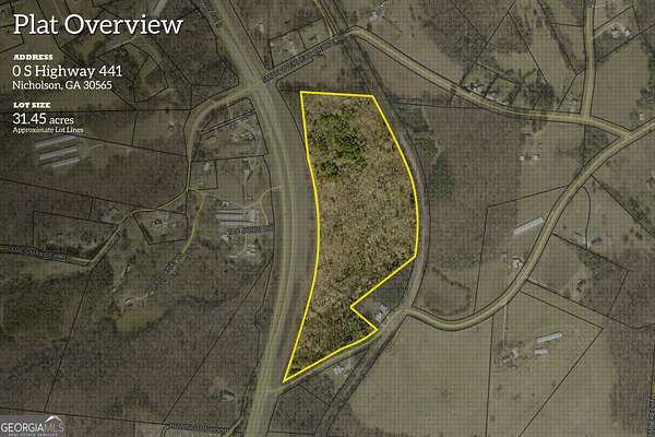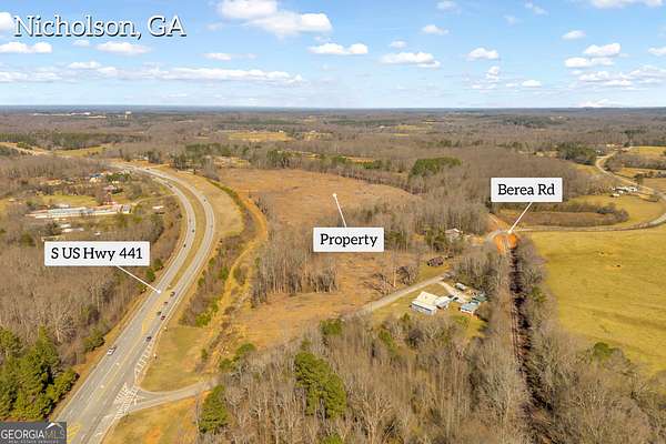 Est $4,712/moCommercial/residential acreage available on Hwy 441 in the city limits of Nicholson! 2 parcels, 013 022f is a 6.03 acre corner lot on Berea rd with a turn lane and curb cut at the intersection. 013 022 is a 25.42 acre parcel that has rail frontage in the back and long frontage on Hwy 441. Zoned HB which allows for many commercial uses, and priced under $20k/acre which is an amazing deal for commercial acreage! Zoning also allows for single family development! Call the listing agent with any questions!