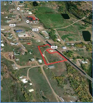 Northern New Mexico Commercial property with Highway Frontage off of NM State Highway 84. This 2.93 acres +/- has unlimited potential for setting up an new or moving an existing business. The property does have a 495 sq foot (16.6x30) studio appartment at the back of the property which is currently occupied. Apartment is on Village utilities to include gas,water sewer and electric. Would have to verify if vacant property has utilities available. Property is on the main highway that brings you right through the village and close to the intersection of 84/64 which goes west to Pagosa Springs, Colorado. Plenty of traffic passes in front of this property. Would make a Prime business location. Just South Lowes Chama Valley Grocery Store.