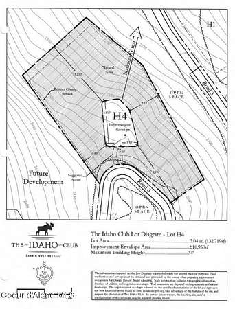 From the east entrance to Moose Mountain at The Idaho Club, property is at the top of the second corner as you drive up the road