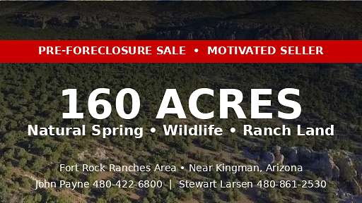Rare opportunity to acquire 160± acres of Northern Arizona ranch land featuring a natural spring, abundant wildlife habitat, and nearby Ash Creek fishing in the scenic Fort Rock Ranches area of Mohave County.