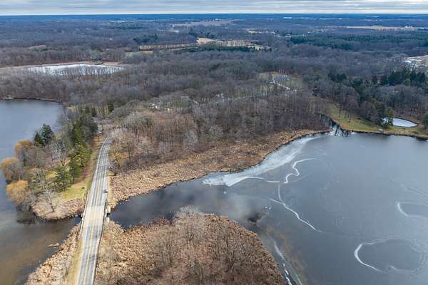 South on Portage Road to bridge where Barton Lake meets Tub Lake. Property on west side.