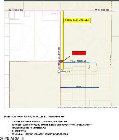 South Rainbow Valley Rd to Riggs Rd, continue on Rainbow Valley Rd about 0.6 Mile to Subject Property on the Left to Lot #3