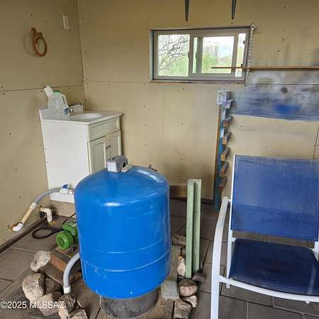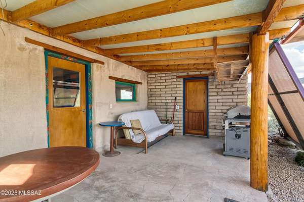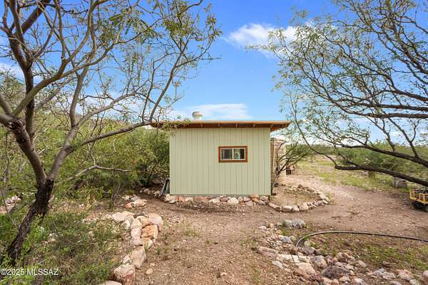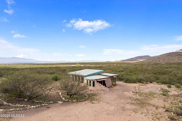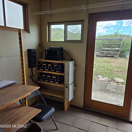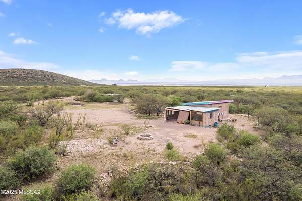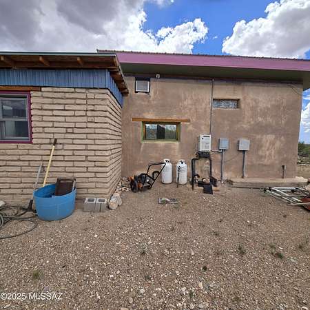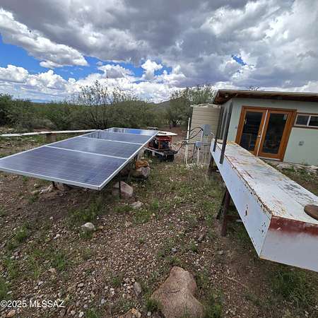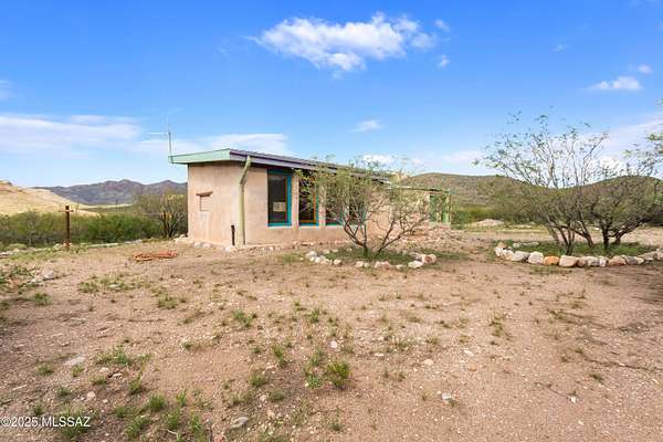 Off-Grid Oasis with Panoramic Views in the Mule Mountain Foothills Escape to serenity on 9.2 acres of breathtaking high-desert beauty, nestled in the foothills of the Mule Mountains. This one-of-a-kind off-grid property offers 360-degree views, abundant privacy, and sustainable living without compromising comfort or charm. At the heart of the property is a thoughtfully built 306 sq ft mud adobe casita, reinforced with rebar and steel mesh. Warm and welcoming, it features 14-inch-thick adobe walls for exceptional insulation, along with dual-pane, custom-crafted Alder wood windows and doors. Slate countertops, reclaimed from a historic church roof add character to the kitchen, while traditional adobe floors provide timeless charm. The roof is insulated with perlite for year-round (MORE) efficiency. Just steps across the patio sits a spacious 76 sq ft bathroom, constructed with 9-inch adobe blocks and also insulated with rock wool. It includes a washing machine (which conveys), and an on-demand propane water heater ensures comfort and convenience. Heating is provided by passive solar through large south-facing windows, supported by two 40-gallon propane tanks that supply the casita and bathroom. A 165 sq ft workshop, also insulated with rock wool, houses the well pump and solar batteries, making this property truly self-sustaining. Outdoor living is just as thoughtfully considered: enjoy peaceful mornings and starlit evenings from the patio complete with a BBQ grill (included). For those with a vision to expand, the property features a 1700 sq ft adobe slab, partially wired and plumbed, with a central trench originally designed for a vacuum system. There's also a separate slab ideal for a battery house or additional outbuilding. Surrounded by wildlife, big skies, and complete quietude, this unique retreat offers the perfect blend of off-grid living and natural luxury. Whether you're looking for a peaceful hideaway or a foundation to build your dream homestead, this property invites you to unwind, explore, and be inspired.