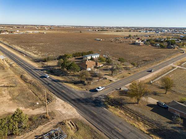 Located just 3 miles off the South Loop, this 9.8-acre parcel offers a prime location with commercial potential and easy access from two sides-S Soncy Rd and McCormick. The property features over 1,200 feet of commercial frontage, making it an ideal opportunity for development, including the subdivision of commercial lots. This property also includes a well-maintained 2,354 sq ft home, built in 1978, with 3 bedrooms and 3 bathrooms, offering immediate use or potential for conversion. With paved access from both sides of the property and electric available on both sides, it provides all the necessary infrastructure to support a variety of business or residential developments. Priced by the square foot, this is a great opportunity to secure a high-visibility commercial location. Water: There is an existing well at the house. There is currently no well log on it. Buyers will be responsible for their own due diligence. Use: The property is ideally set up for commercial subdivision. Offering 2 sides of paved access & frontage. House: There is a 2,354 sq ft, 3 bed, 3 bath house located on the intersection of S Soncy & Mccormick. It has recently been leased. The house is on it's own well and septic system. Minerals: Any and all owned mineral estate will convey with the sale. Landscape: PxA, Pantex silty clay loam, 0 to 1 percent slopes, 9.78, 100% - 47, 3e Exclusions: Any and all personal property will be excluded with the sale. Zoning/Easements: The property is outside of any municipality therefore it is not zoned. All existing easements will be identified by surveyors & title company. Electric easements are already known. Estimated Taxes: Taxes with exemptions: $4,309.60 *This is an estimated tax for 2024. Potential buyers will be responsible for verifying the taxes with or without exemptions.* Area: The 9.8 Acres sits on the intersection of S Soncy & Mccormick - 3 miles south of the loop. Access: There is currently access from S Soncy & Mccormick leading up to the house. Directions: Take S Soncy (FM 2590) south of Amarillo, TX. The property is on the NE intersection of S Soncy & Mccormick.
