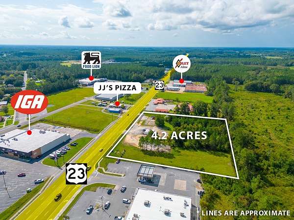 Est $4,284/moExcellent COMMERCIAL lot for Development off Major Hwy US-1 in Alma. 4.20 acres. Currently there are two structures on the property that will be removed prior to sale. Can be sub-divided or sold as a whole. City water and sewer at the property. Traffic count 7520 daily.