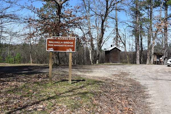 7 wooded acres a few hundred yards from the Mainstream of the Pere Marquette River. This recreational/buildable property has State Land to the South between this parcel and the river. To the East and West are Federal Land. There are around 1000 acres of land to enjoy for fishing, hunting or hiking. A short walk to the West down an old grade two track brings you to the waters edge. There are two separate connecting parcels to make up the acreage. There is an improvable easement for access from Walhalla road that is a county maintained paved road. The larger parcel has frontage on Walhalla road but the side of the hill would require grading for driving access to get to both parcels. 00202101050 is the second parcel
